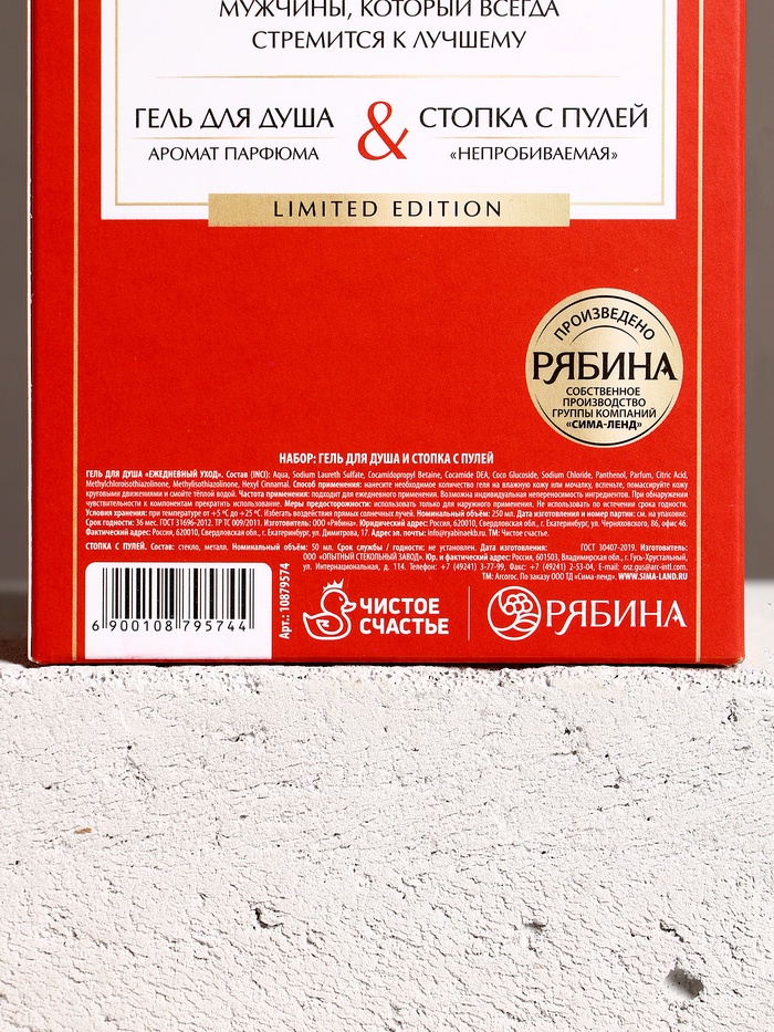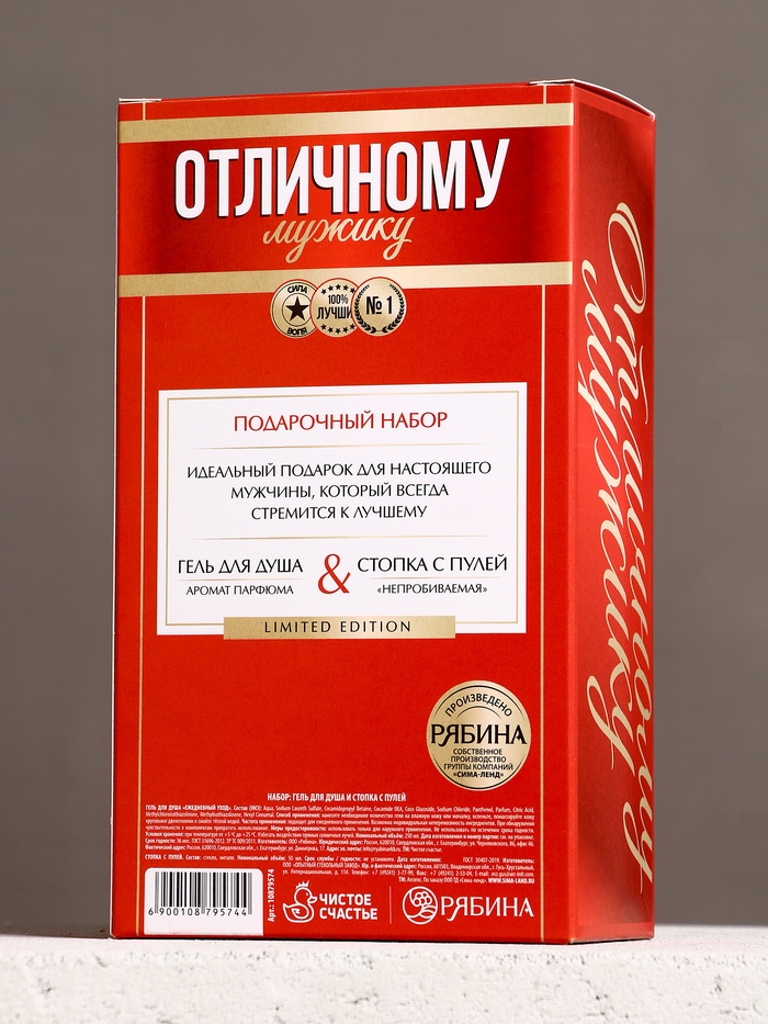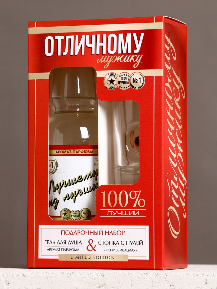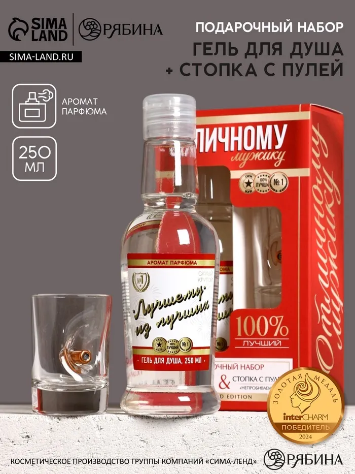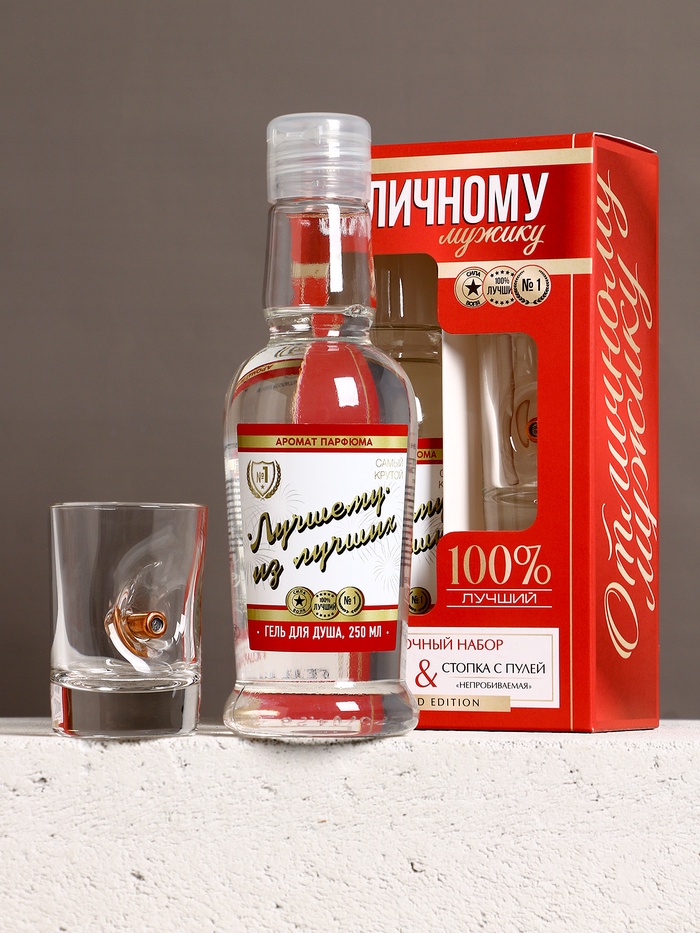 Набор «Отличному мужику», гель для душа во флаконе водка 250 мл и стопка с пулей, Чистое счастье — Характеристики