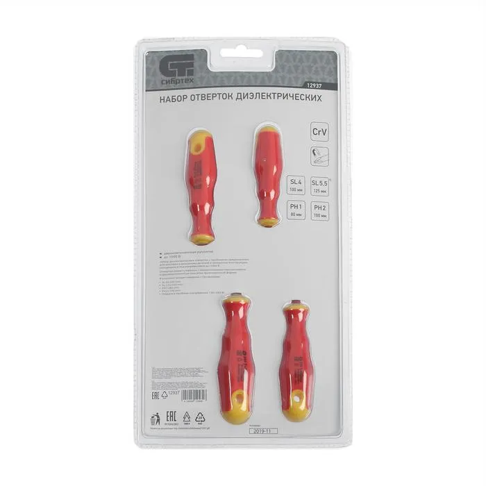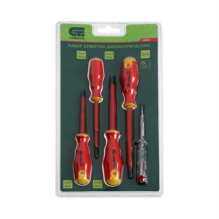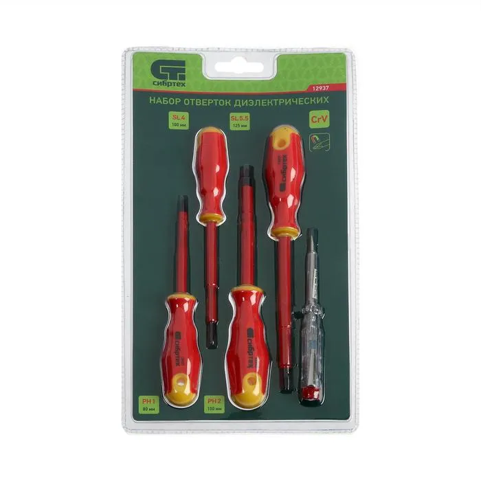Набор отверток диэлектрических "Сибртех" 12937, до 1000 В, тестер, CrV, 2К рукоятки, 5 шт. — Характеристики