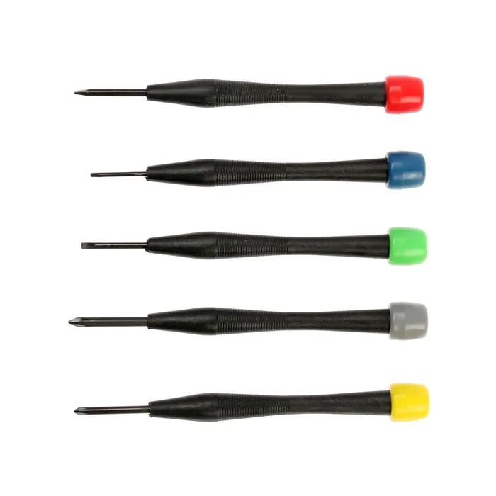 Набор состоит из крестообразных и шлицевых отвёрток со следующими размерами: Pjn H0, PH00, SL1.8, SL2.4 и SL3.