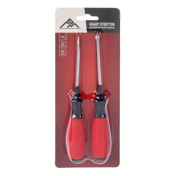 Набор отверток ЛОМ, обрезиненные рукоятки, PH2/SL6×100 мм, 2 шт. — Характеристики