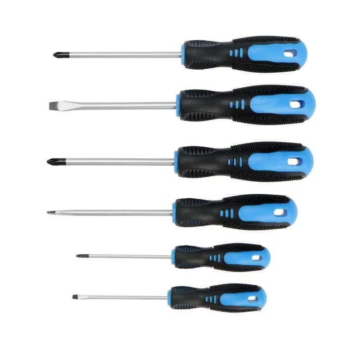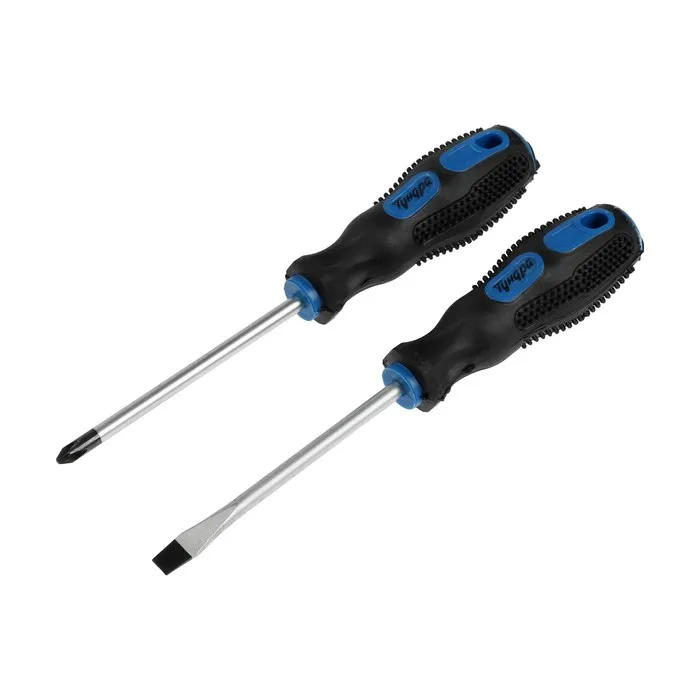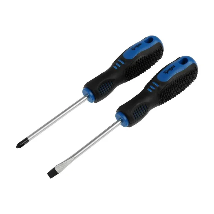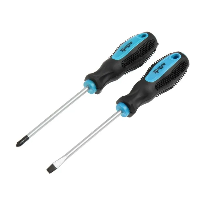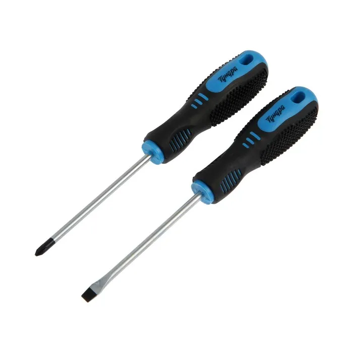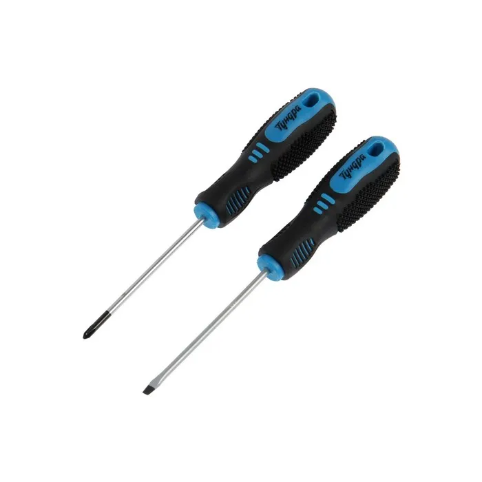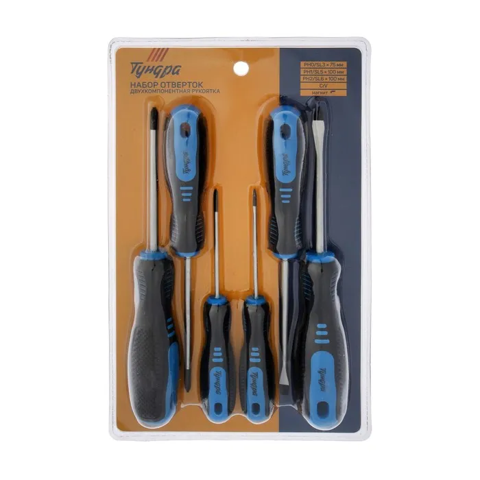 Набор отверток ТУНДРА, CrV, хром, 2К рукоятки, PH0,SL3×75 мм, PH1-2, SL5-6×100 мм, 6 шт. — Характеристики