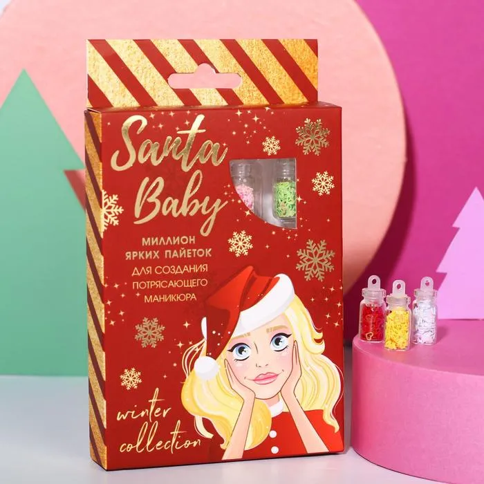 Набор пайеток для декора ногтей Santa baby, 12 цветов — Характеристики