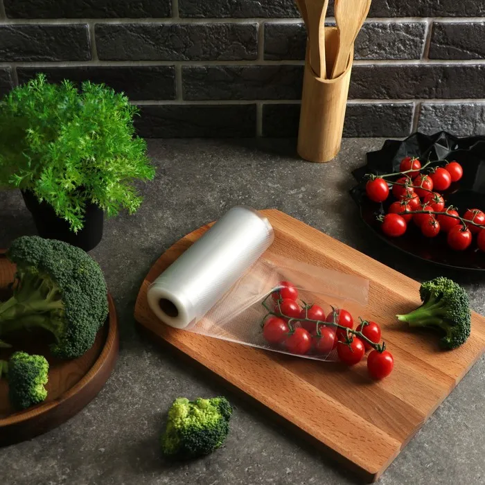 Пищевые пакеты для домашнего вакууматора - это практичный способ хранения и приготовления продуктов. С помощью рифлёных вакуумных пакетов можно заморозить пищу, защитить от обветривания, замариновать и приготовить в технике су-вид. Продукты в пакетах для вакуумирования можно разогревать в микроволновой печи, они безопасны для здоровья и не влияют на вкус и запах пищи. Большой объём и практичный размер вакуумных пакетов позволяют ощутимо сэкономить на упаковке для продуктов.