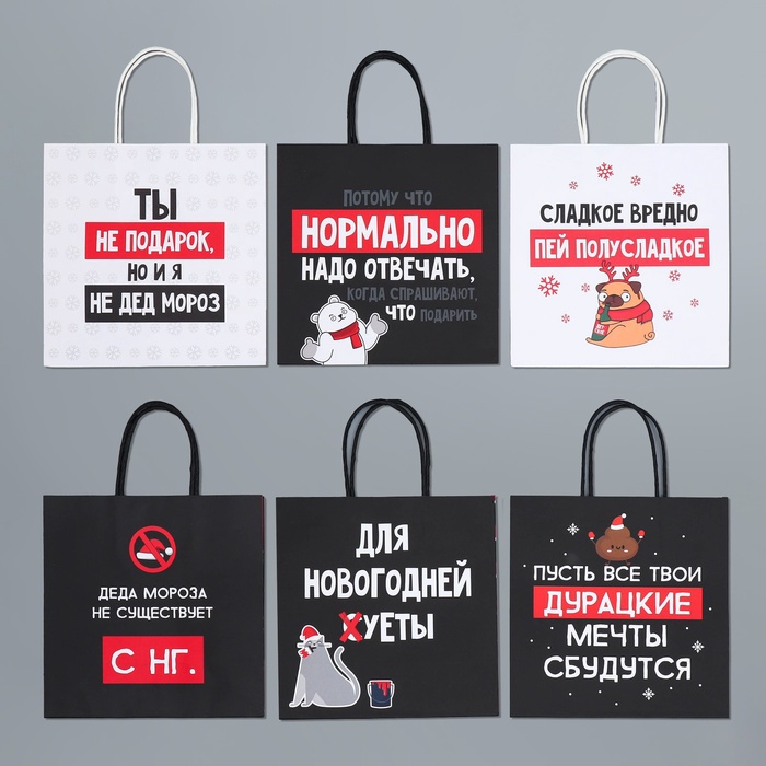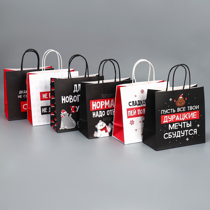 Набор пакетов подарочных новогодних «Так тебе и надо», 6 шт., 22×22×11 см