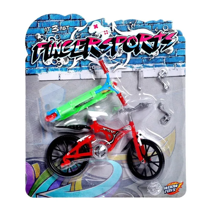 - В комплект входят фингер-самокат и фингербайк — уменьшенные версии самоката и велосипеда.