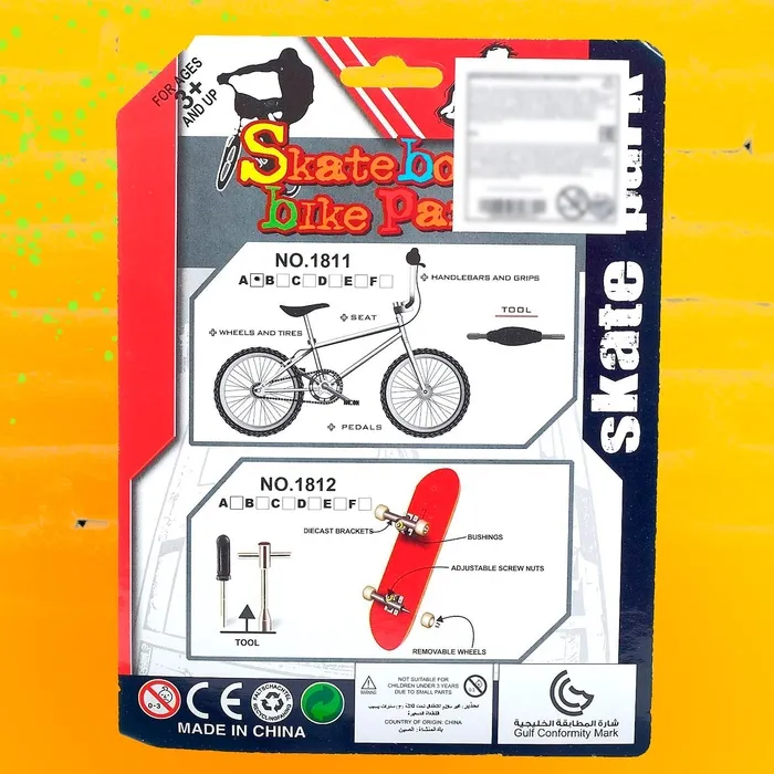 - В комплект входят фингербайк и фингерборд — уменьшенные версии велосипеда и скейтборда.