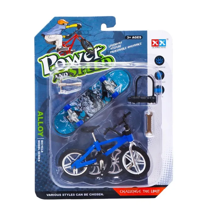 - В комплект входят фингербайк и фингерборд — уменьшенные версии велосипеда и скейтборда.
