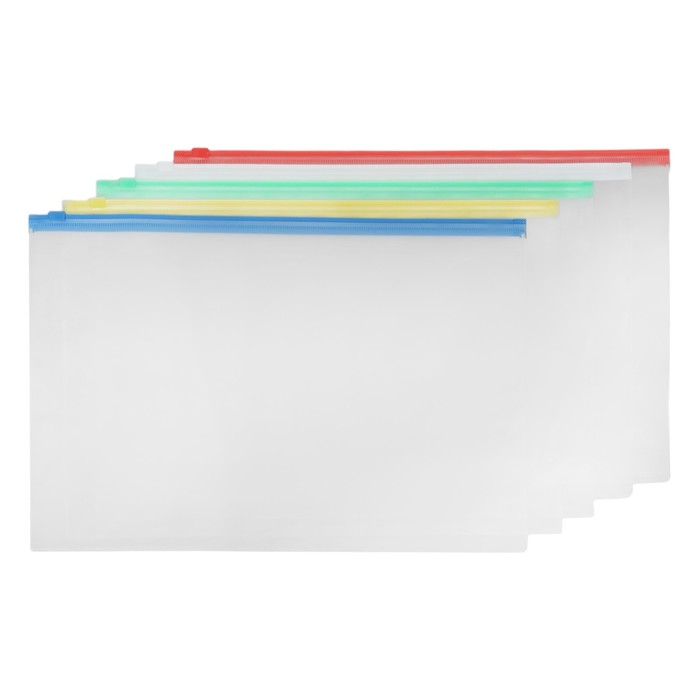 Набор папок-конверт на ZIP-молнии А4, 150 мкм, Calligrata, c цветной молнией, прозрачные, 10 штук, микс — Характеристики