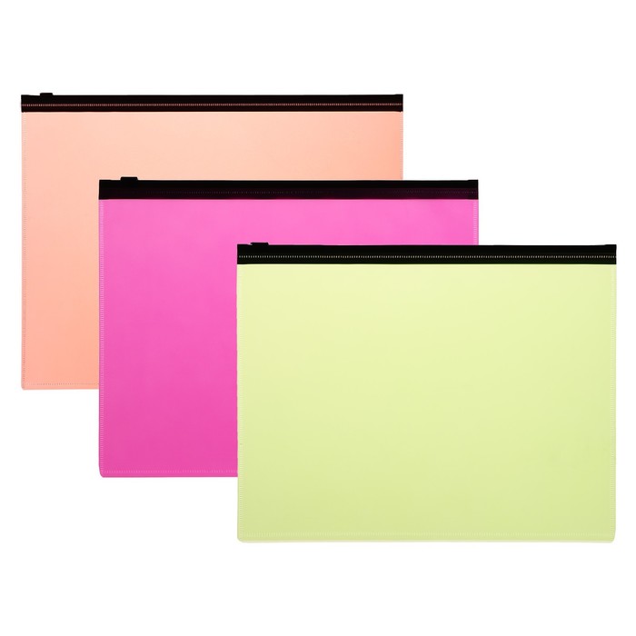 Набор папок-конверт на ZIP-молнии А5, 150 мкм, Calligrata Neon, c черной молнией, неон, 4 штуки, микс — Характеристики