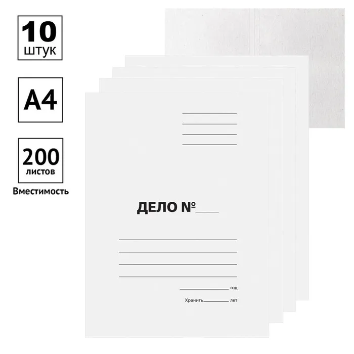 Папка-обложка Calligrata серии «Дело» формата А4 предназначена для хранения бумаг. Изделие размером 310*220 мм выполнено из немелованного картона белого цвета, плотностью 300 г/м2. Ширина корешка составляет 30 мм. Отсутствие скоросшивателя позволяет организовать хранение бумаг без использования дырокола. На лицевой стороне располагаются поля для надписей.