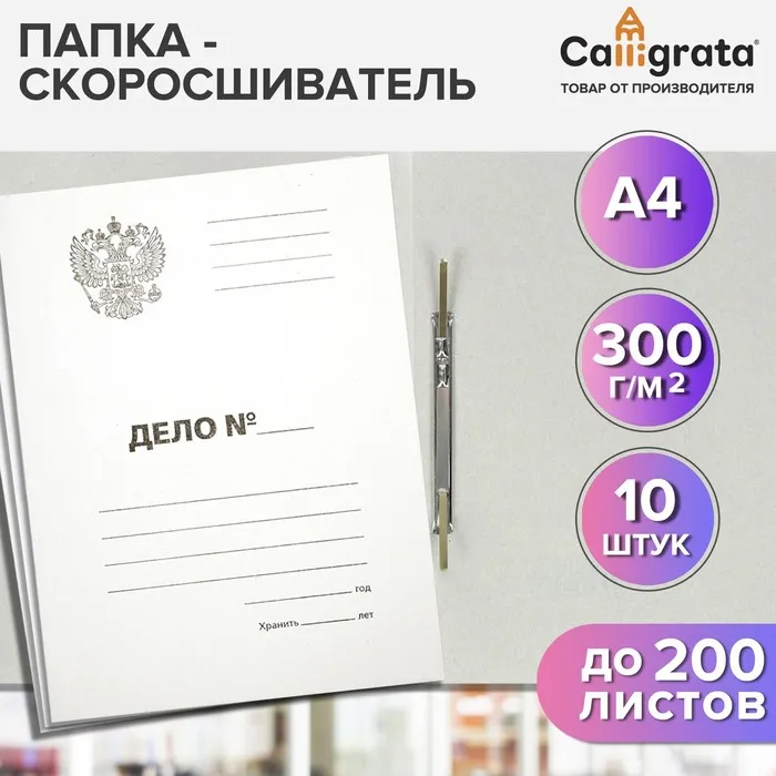 Скоросшиватель, пробитый Calligrata "Дело" формата А4 станет надёжным помощником в работе. Папка размером 310*220 мм изготовлена из немелованного картона плотностью 300 г/м2. Обложка изделия - белая с полями для надписей. Ширина корешка 30 мм. Механизм скоросшивателя позволяет надежно зафиксировать бумагу для организации хранения и транспортировки.