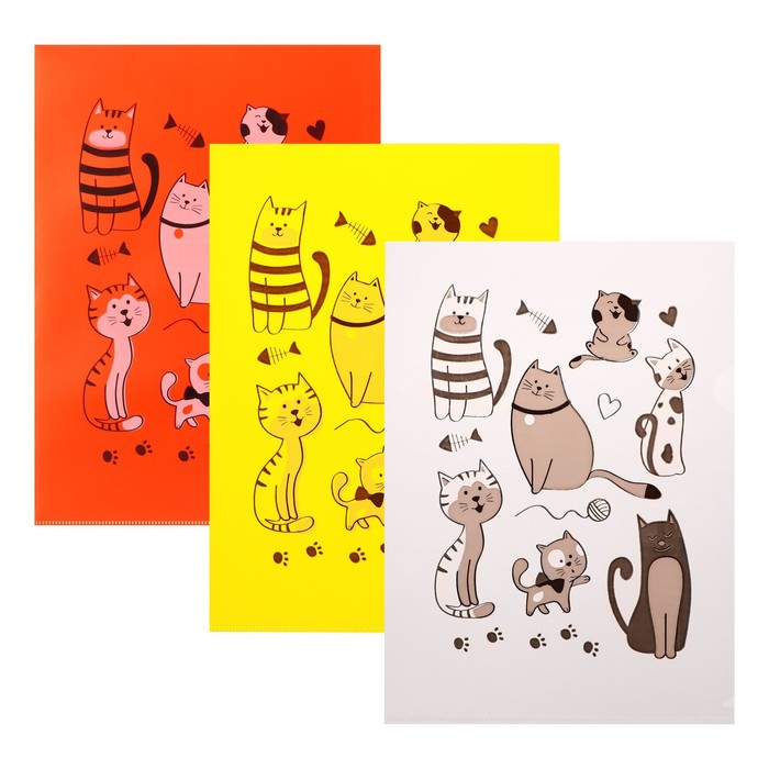 Набор папок-уголков А4, 180 мкм, Calligrata «Котики», полупрозрачные, 6 штук, с принтом, микс