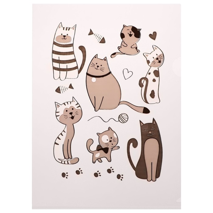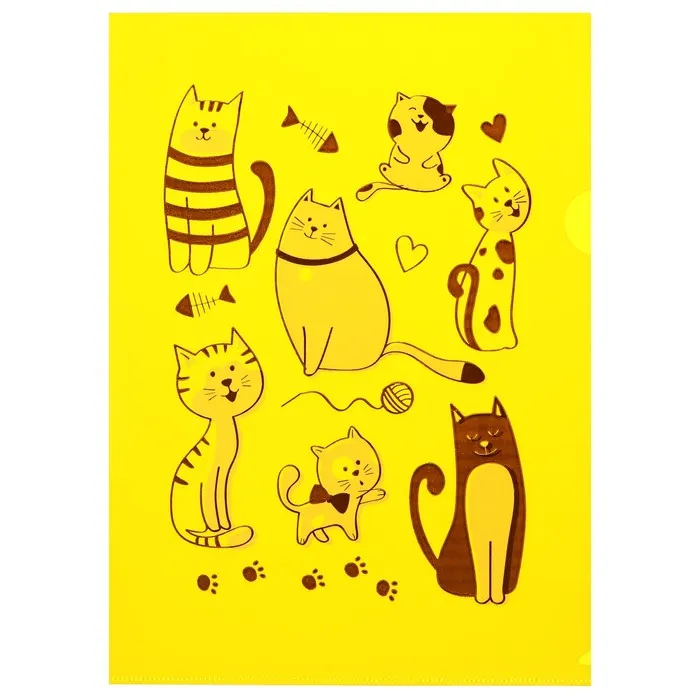 Набор папок-уголков А4, 180 мкм, Calligrata «Котики», полупрозрачные, 6 штук, с принтом, микс — Характеристики
