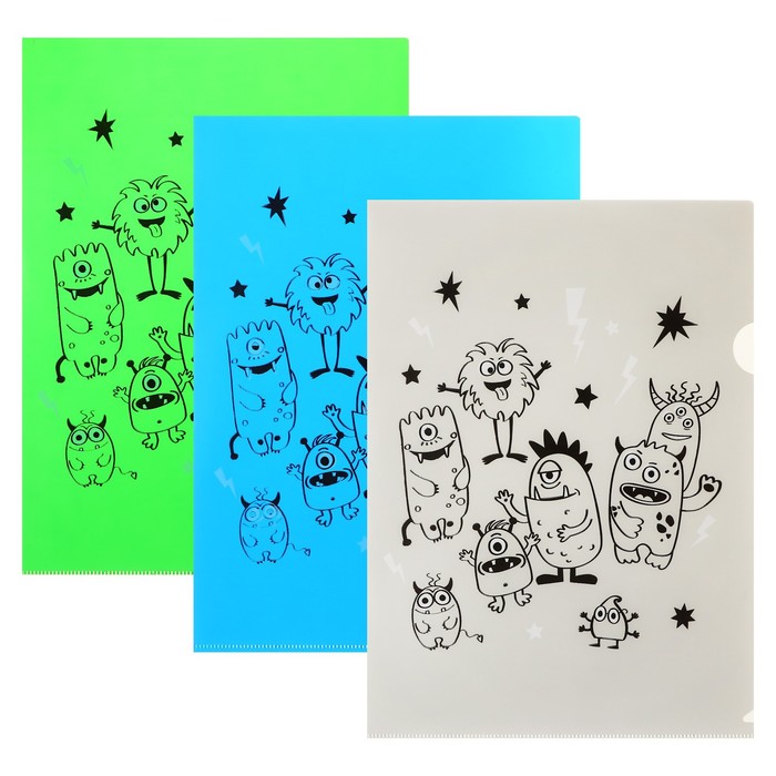 Набор папок-уголков А4, 180 мкм, Calligrata «Монстрики», полупрозрачные, 6 штук, с принтом, микс — Характеристики