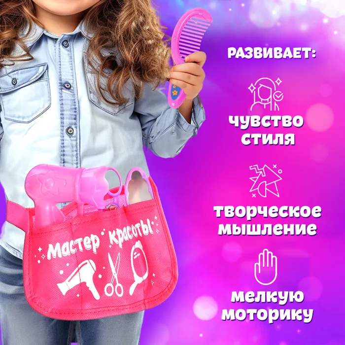 Игровой набор парикмахера «Мастер красоты» — это отличная возможность для маленьких модниц почувствовать себя настоящими стилистами. Все необходимые аксессуары собраны в удобной сумочке, что делает игру ещё удобнее.