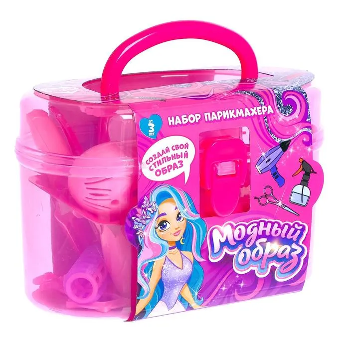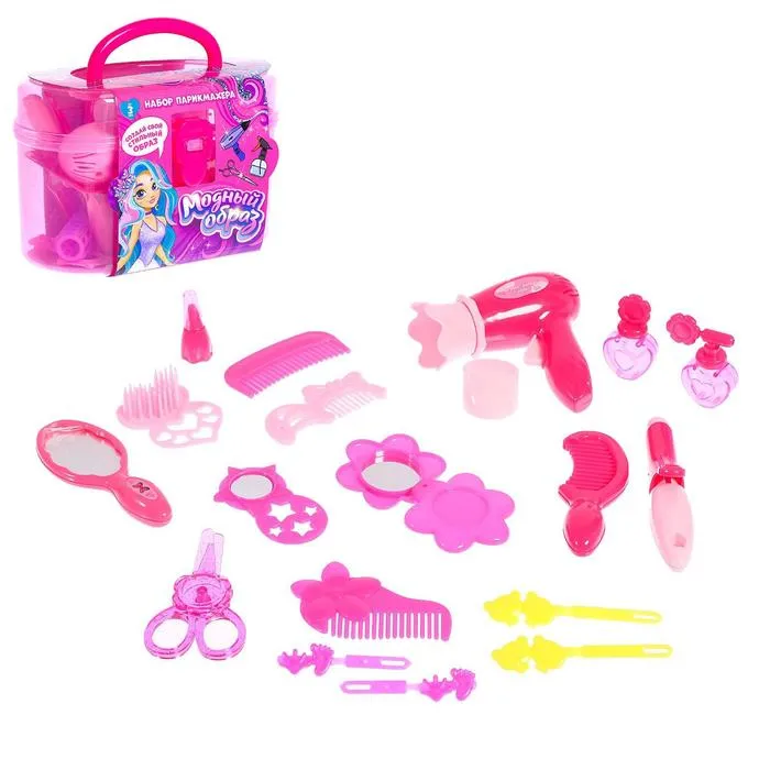 Чтобы стать настоящей звездой вечеринки, достаточно воспользоваться наборчиком. В него входят: фен, разные виды расчёсок, плойка, заколочки, зеркальце, духи и многое другое! Девочка почувствует себя маленькой принцессой, придумает и воплотит множество увлекательных сюжетов.