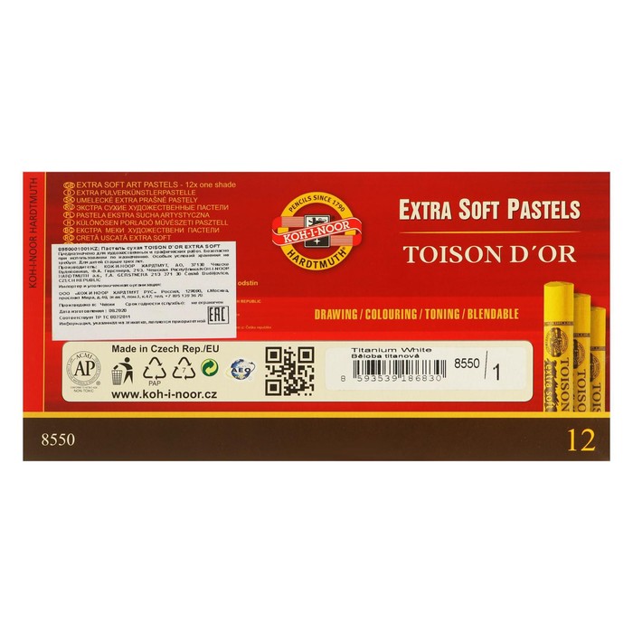 Набор пастели сухой Koh-I-Noor TOISON D`OR EXTRA SOFT 8550, титановый белый, 12 штук в наборе — Характеристики