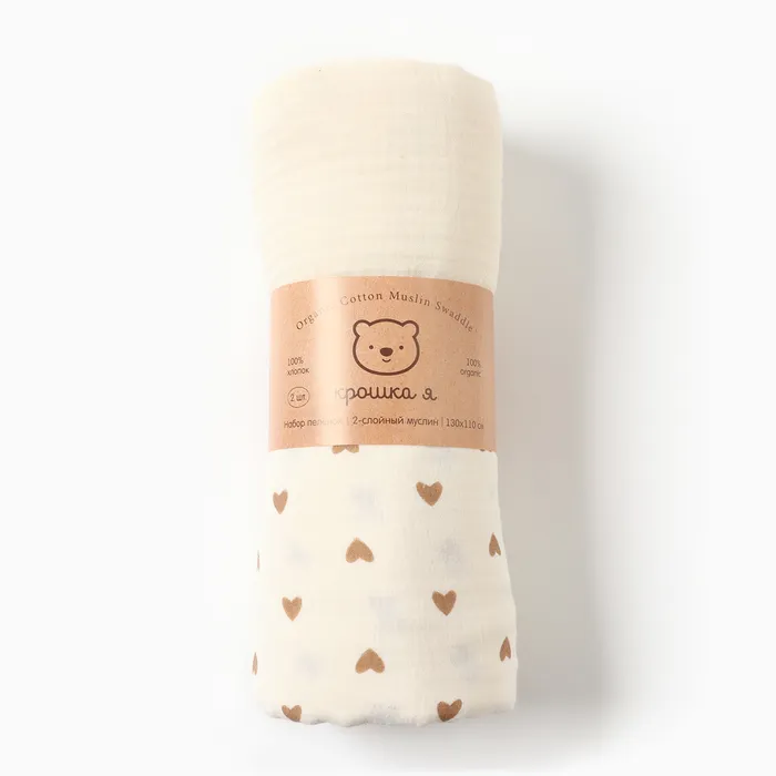 Набор пеленок Крошка Я Heart, 130х110см - 2 шт, муслин, 100% хлопок — Характеристики