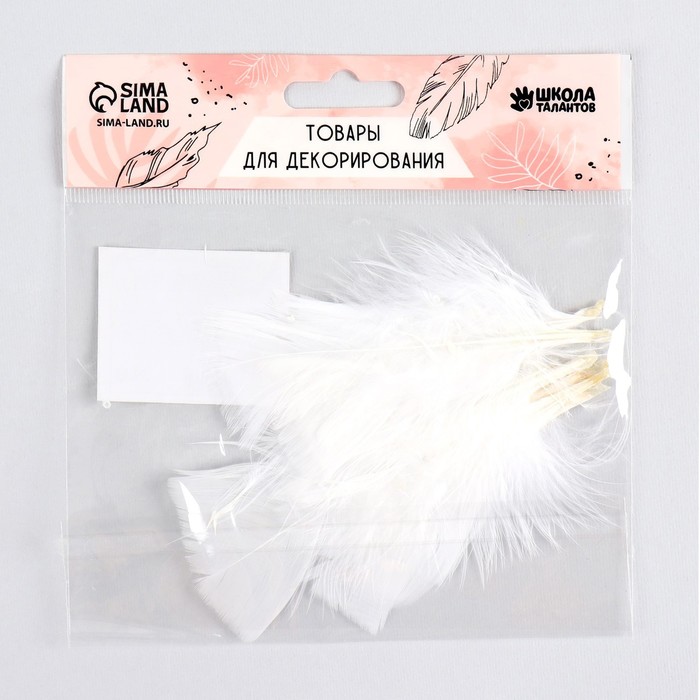 Набор перьев для декора 10 шт., размер 1 шт.: 10×4 см, белый