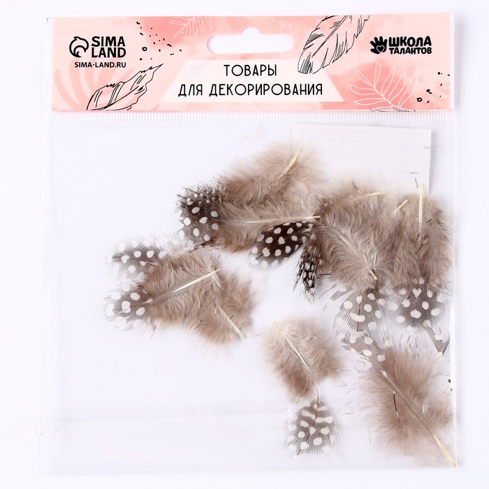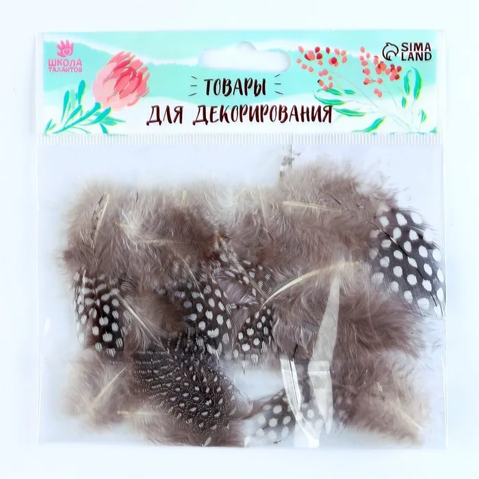 Набор перьев для декора 10 шт., размер 1 шт.: 5×2 см, коричневый с белым — Характеристики