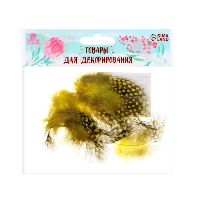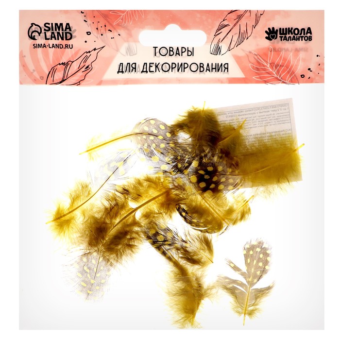 Набор перьев для декора 10 шт., размер 1 шт.: 5×2 см, жёлтый с коричневым — Характеристики