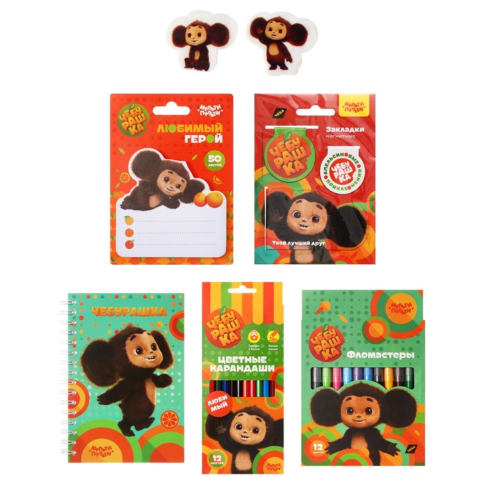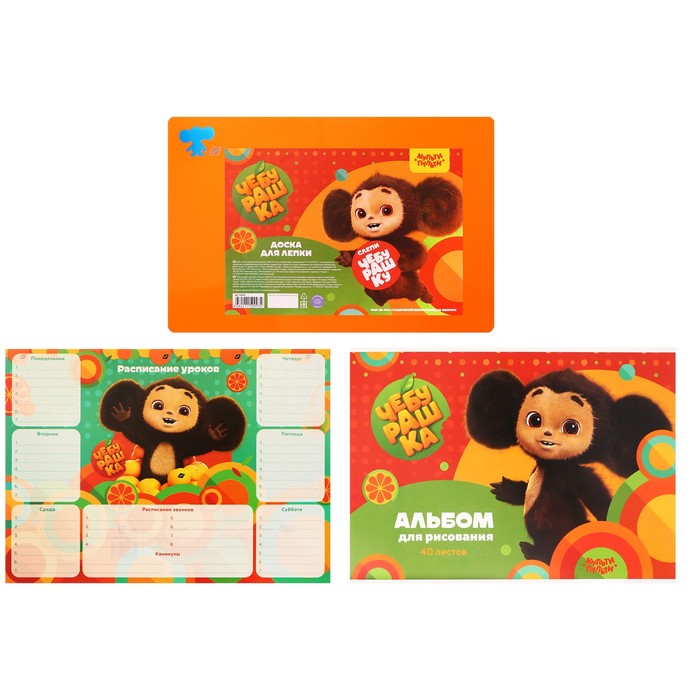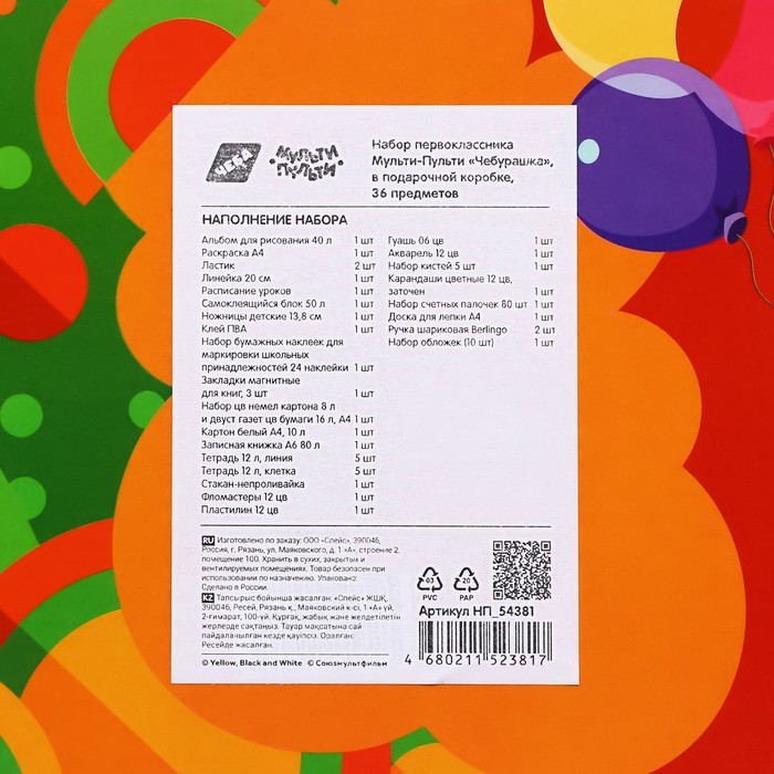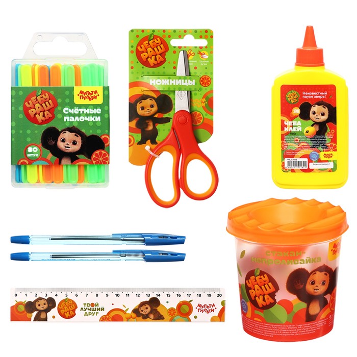 Набор первоклассника 36 предметов, Мульти-Пульти "Чебурашка", в подарочной коробке — Характеристики