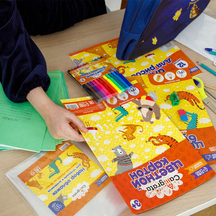 Яркая текстильная папка с эргономичным наполнением станет не только уникальным и практичным подарком, но и вдохновит на любые творческие открытия. В наборе присутствует качественная канцелярия для школы: тетради, цветные карандаши, пластилин, ножницы и многое другое. Такой подарок обеспечит Вашего ребёнка всем самым необходимым и создаст положительное отношение к учёбе.
