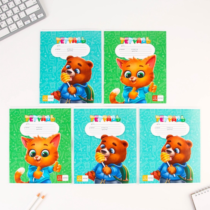 - Тетрадь, А5,12 листов, клетка - 5 шт.;