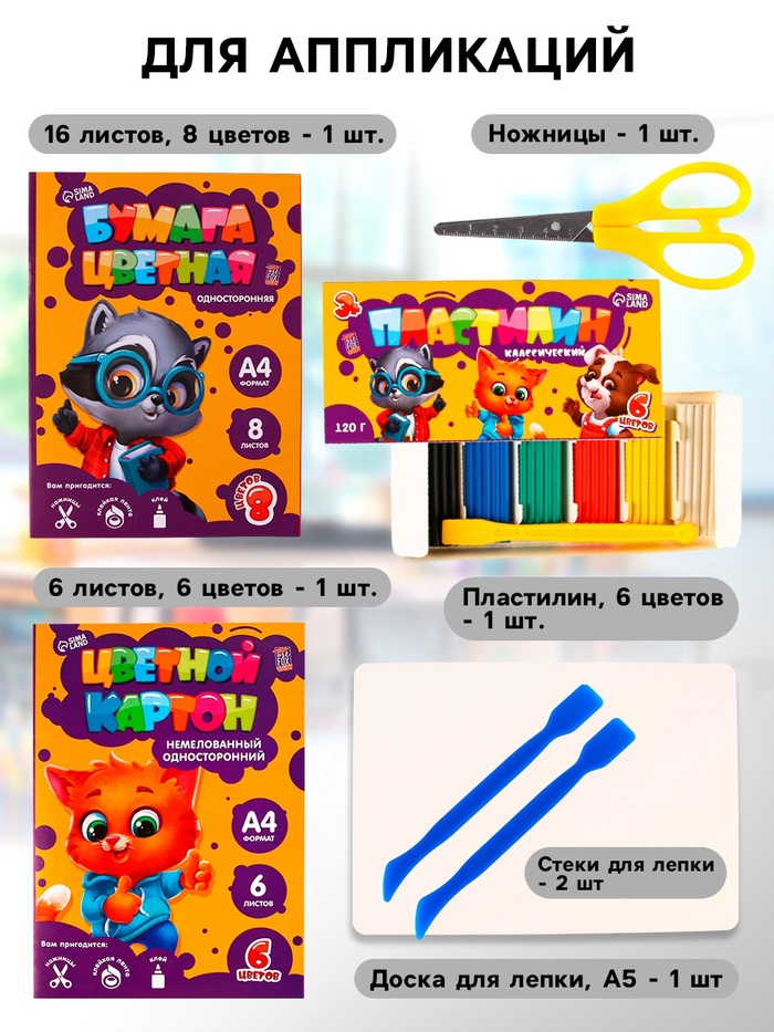 - Бумага цветная, 16 листов, 8 цветов - 1 шт.;