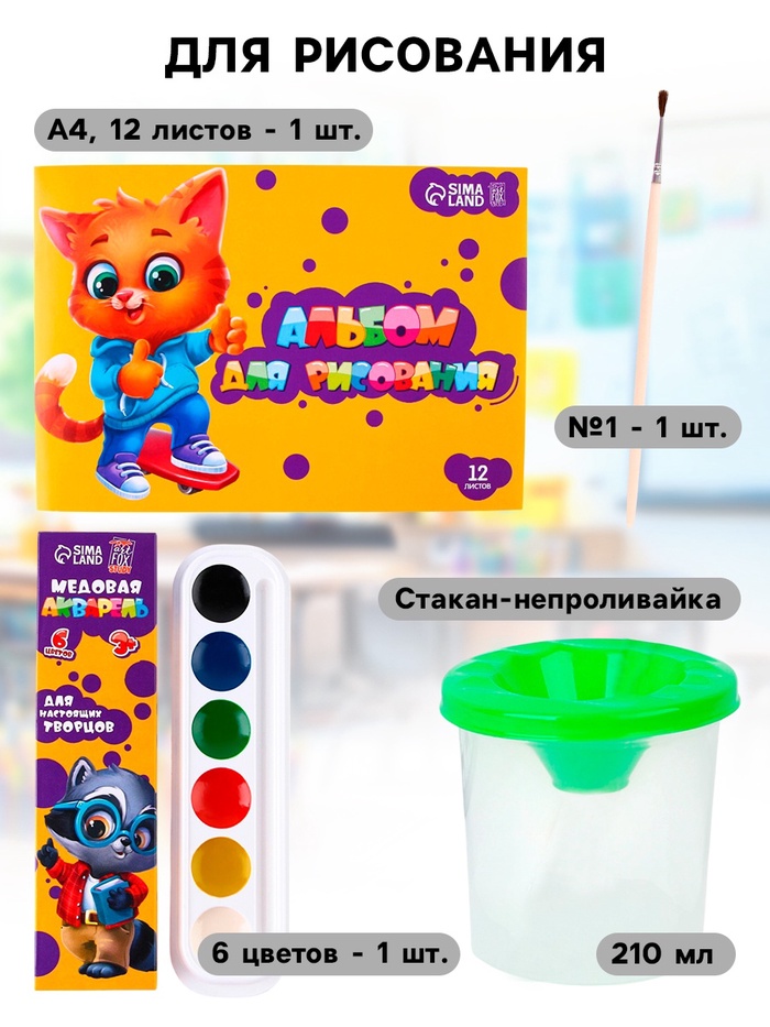 - Альбом А4, 12 листов (МИКС) - 1 шт.;