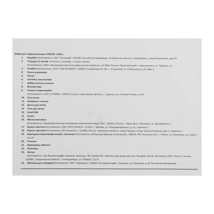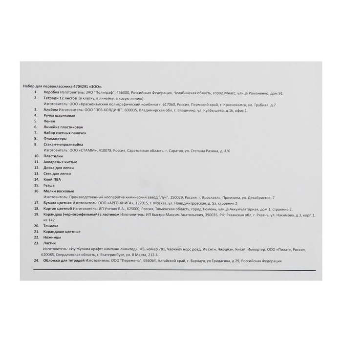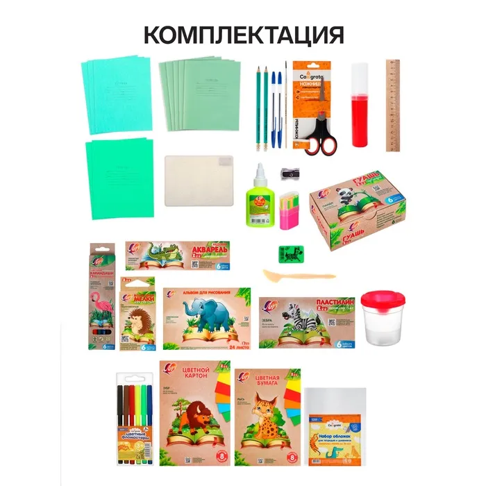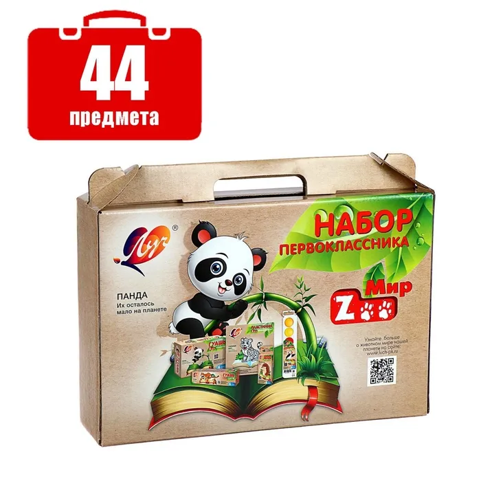 В набор первоклассника Луч «Zoo», 44 предмета входят: