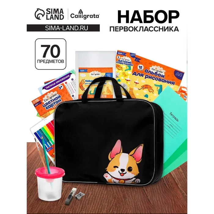 В набор первоклассника Calligrata «Корги», 70 предметов входят: