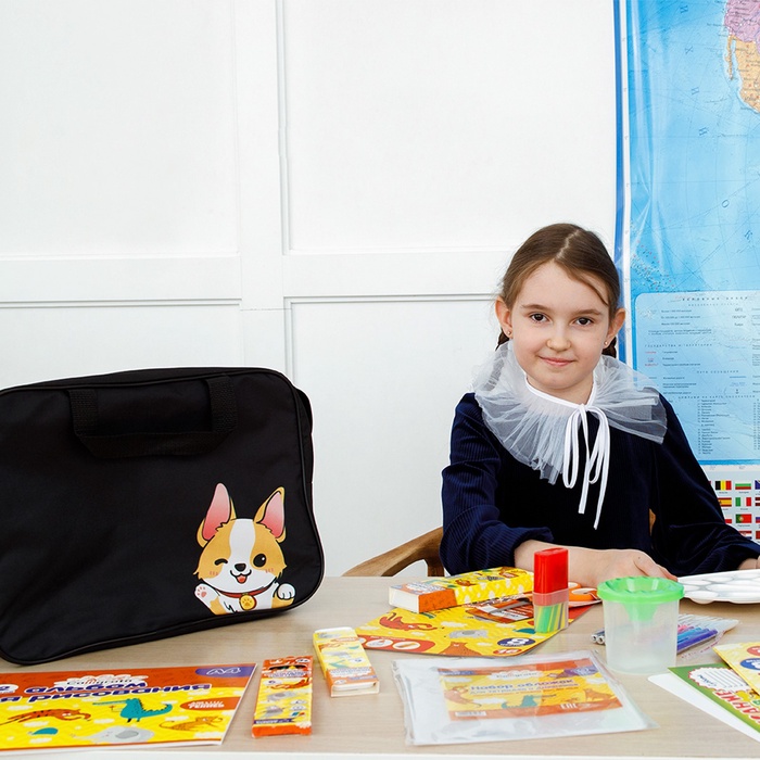 Набор первоклассника, 70 предметов, Calligrata «Корги», с пособиями, в папке — Характеристики