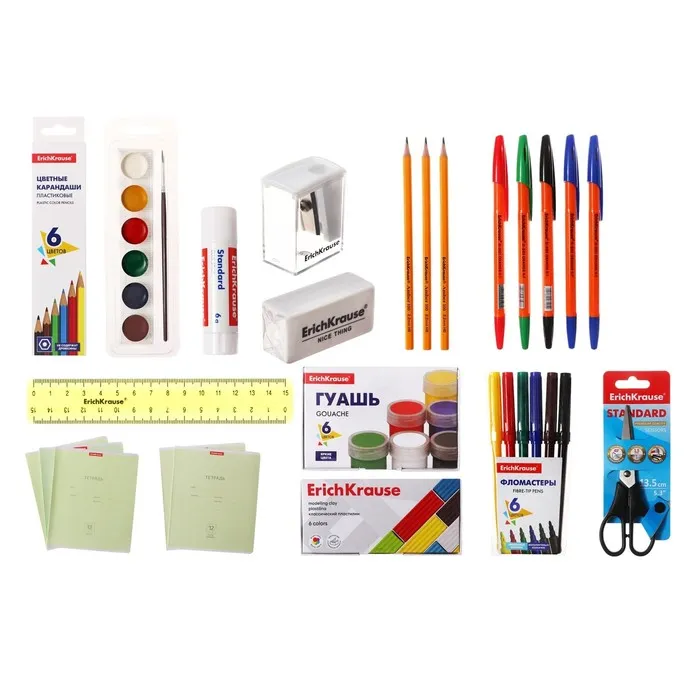 Состав набора первоклассника ErichKrause скомплектован на основе рекомендаций учителей начальных классов.