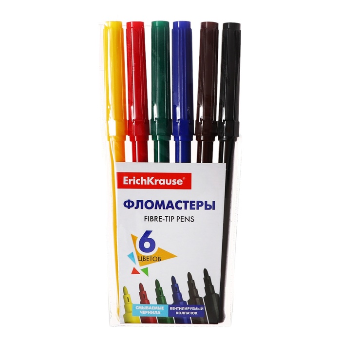 - Фломастеры ErichKrause Basic, 6 цветов - 1 шт.