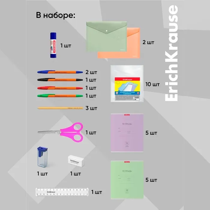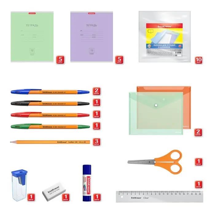 Набор первоклассника ErichKrause, 43 предмета, КЛАССНЫЙ, микс — Характеристики