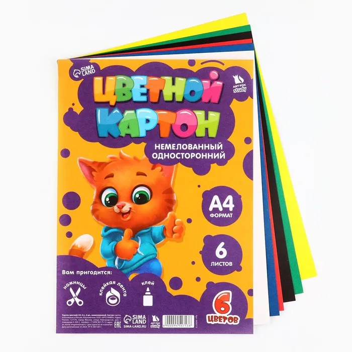 - Цветной картон, А4, 6 листов - 1 шт.;