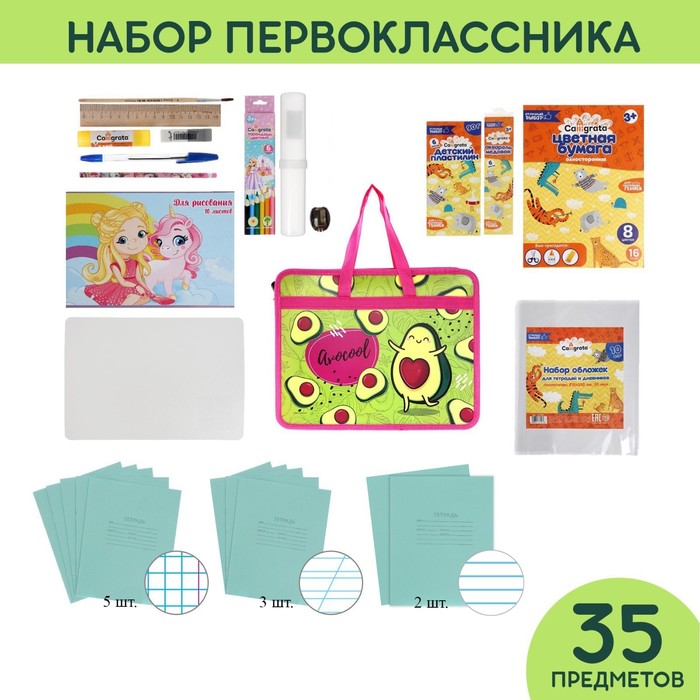 Набор первоклассника в папке, Calligrata, «Авокадо», 35 предметов — Характеристики
