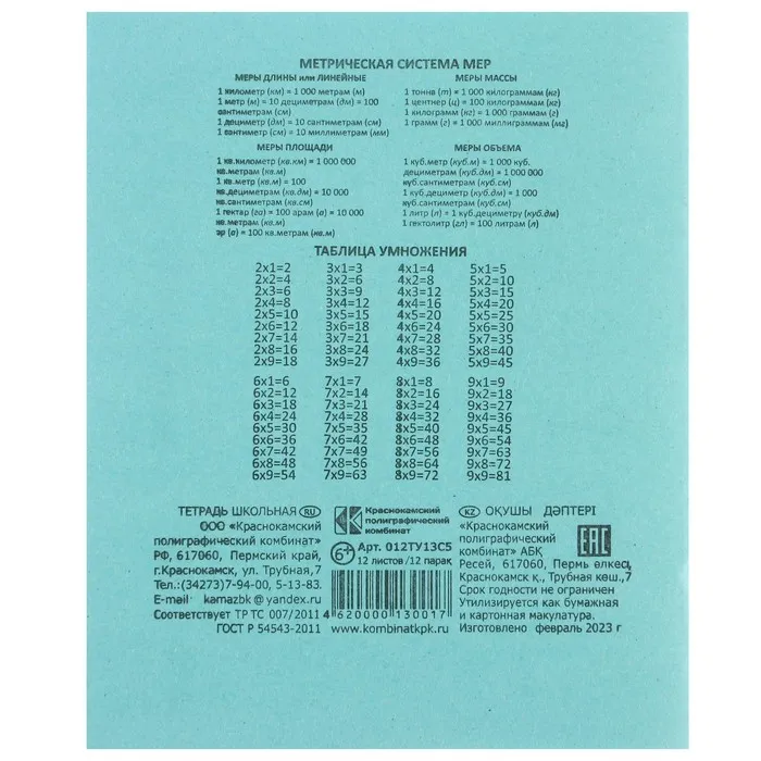 Составляющие набора: Тетрадь