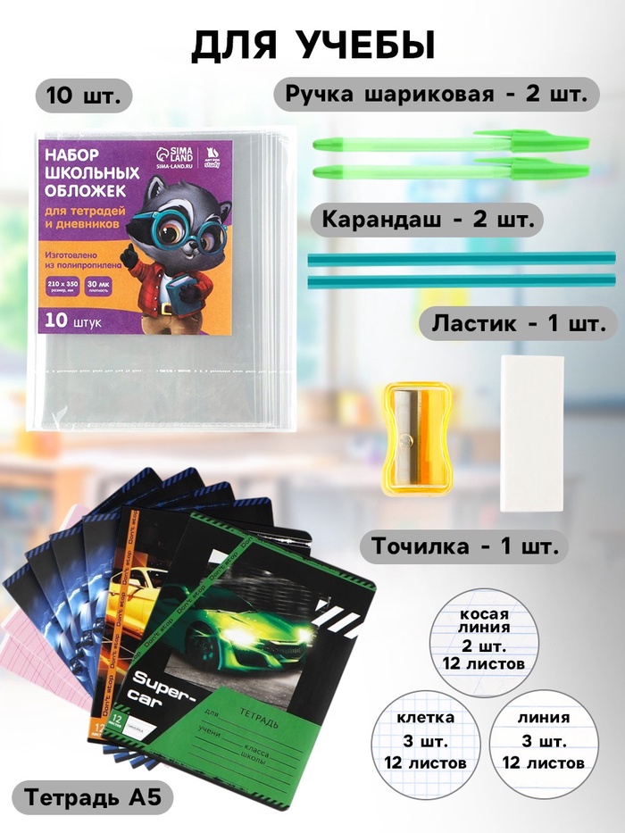 Набор первоклассника в папке для тетрадей 25 предметов «Машина» — Характеристики
