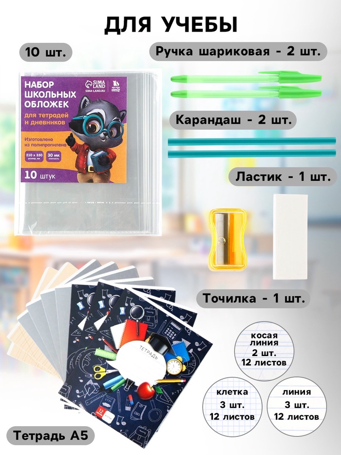 - Тетрадь, А5,12 листов, клетка - 3 шт.;