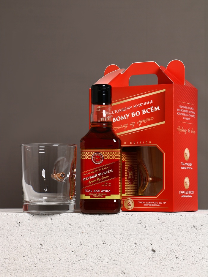 Набор «Первому во всём»: гель для душа виски 250 мл и стакан с пулей, Чистое счастье — Характеристики