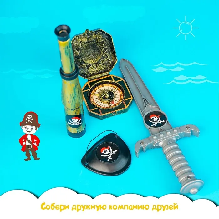 карта;компас;повязка на глаз;клинок;подзорная труба.