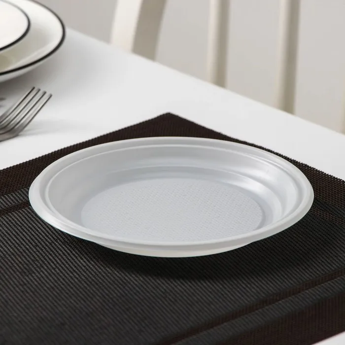 Забудьте о мытье посуды после большого праздника или пикника с этим большим набором одноразовой пластиковой посуды. Включает все необходимое для комфортного приема пищи шестью гостями: тарелки, стаканы и столовые приборы. Идеальное решение для больших мероприятий, кейтеринга и выездных пикников.