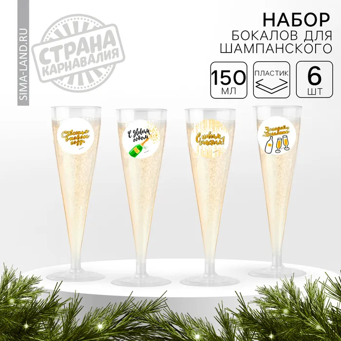 Набор пластиковых бокалов под шампанское «С Новым Годом», МИКС 150 мл — Характеристики