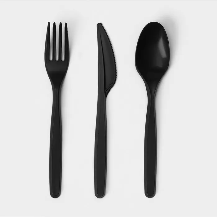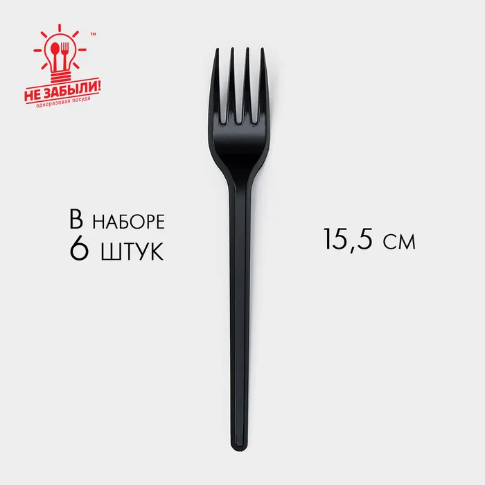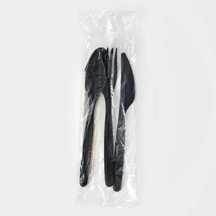 Набор пластиковых одноразовых столовых приборов «Элит», 5 предметов: вилка, ложка, нож, зубочистка, салфетка, 18 см, чёрный — Характеристики