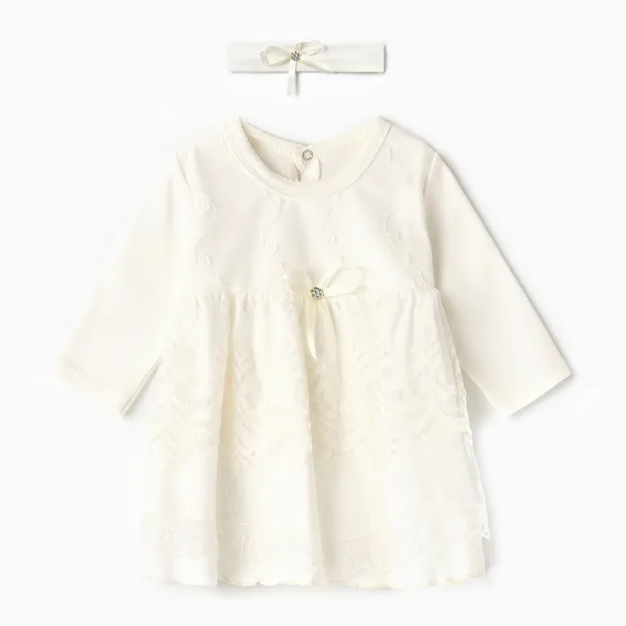 Набор: платье с длинным рукавом и повязка Крошка Я,1-3мес (50-62см),100 % хлопок — Характеристики