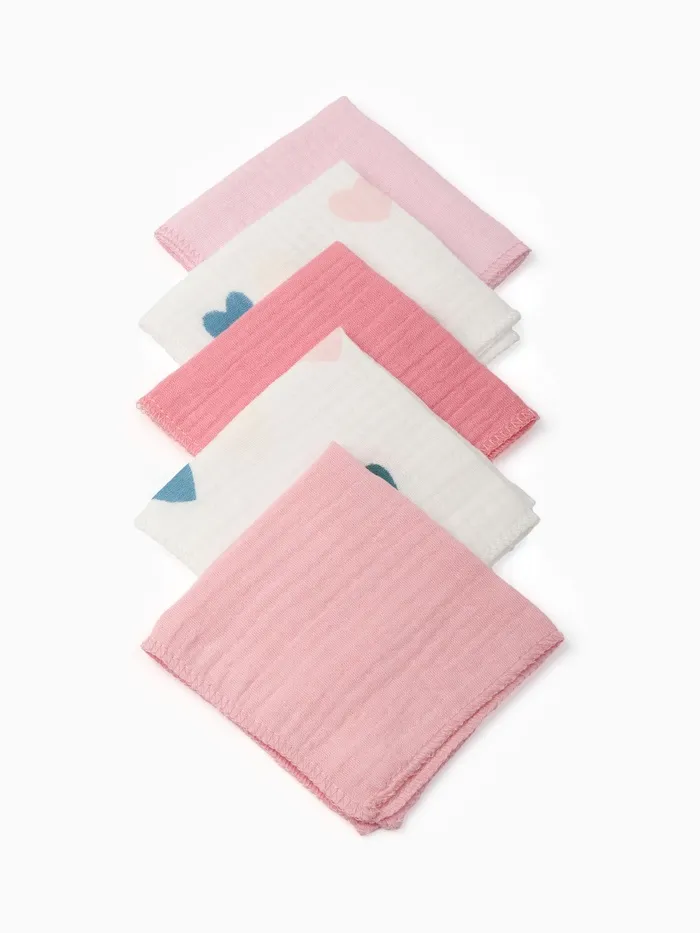 Набор платочков Крошка Я Сolored hearts (вид 1) 20*20 см-5 шт, муслин, 100 % хлопок