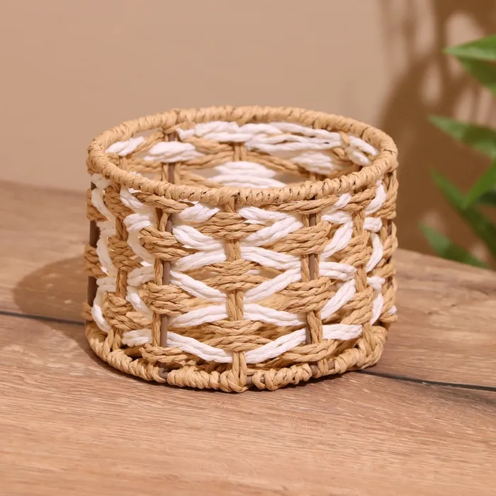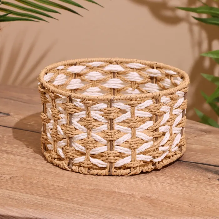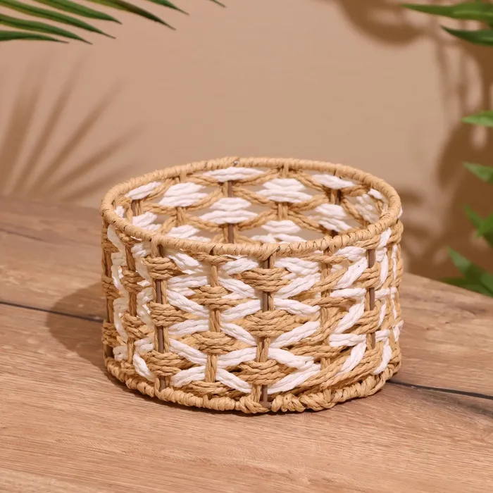 Корзина плетёная, бамбук, розовая, низкая