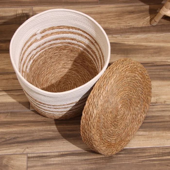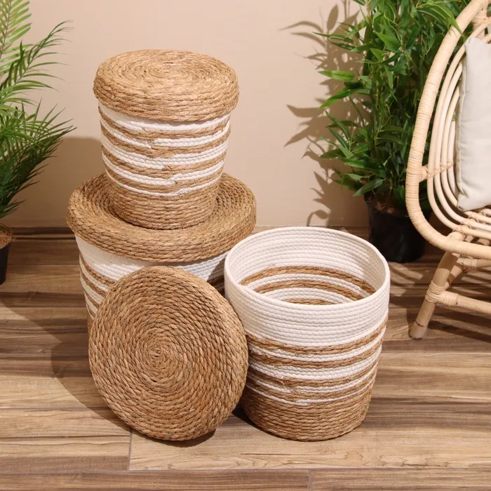 Набор плетёных корзин с крышкой, 3 шт, 36х36х37 см